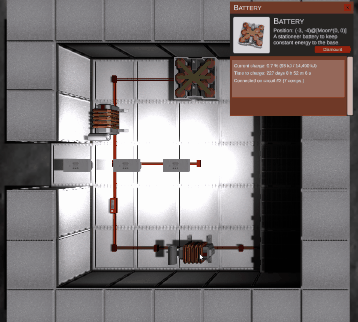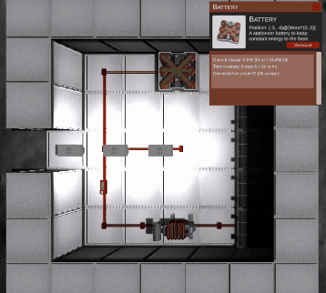 The energy system in TFTL is aimed to be a bit more realistic than in classical space games. Not only you'll have to "connect" devices like solar panels, batteries, lights, machines, etc. but also, you'll have to manage energy, store energy for the night, prioritize some critical circuits (like life support systems) and isolate high-consumption systems to avoid a blackout.